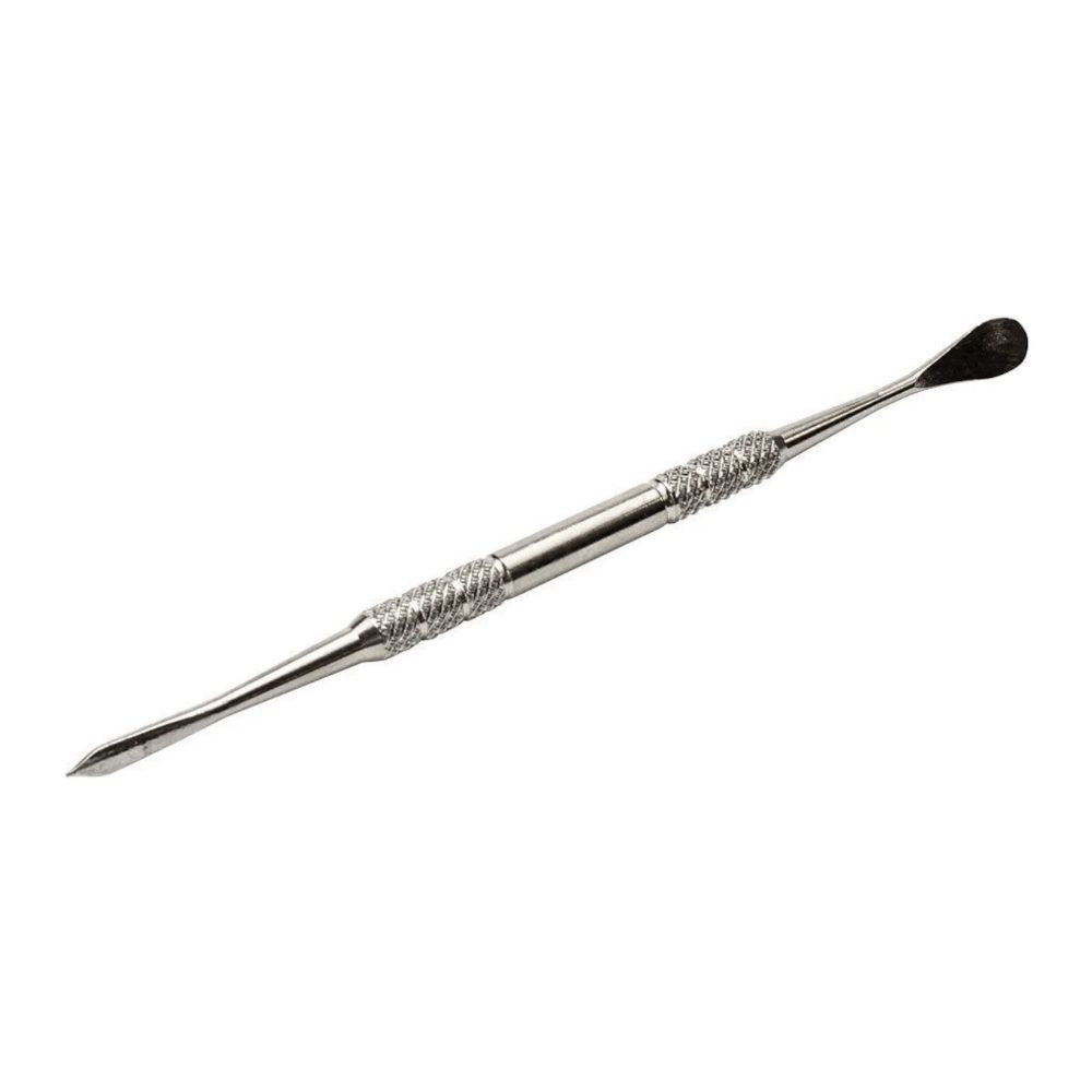 This double-sided dab tool is made from grade 2 titanium and measures 4.75" in length. On one side there is a nice catcher tool that can easily hold a large amount of material, while on the other side there is a suitable sharp poker tool for cleaning or scraping.
