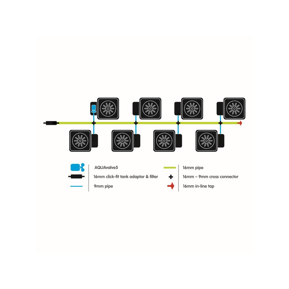 The 1Pot XL system is easily expandable so that many pots can be connected to one tank. See examples of typical setups using 9mm or 16mm tubing. Pots and containers can be easily moved freely and when plants get too big they can easily be moved apart. After adjusting and filling the tank with water and liquid fertilizer, this extremely versatile system completely takes care of all your plants' needs.