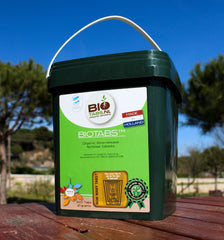 BioTabs fertilizer tablets are 100% organic. They contain bone meal, blood meal, feather meal, fish meal, natural humic acid, beneficial soil bacteria and a slow-release nitrogen formula.