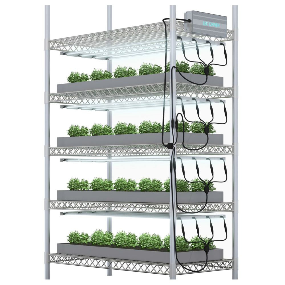 The GENT LED Dimmer Rack Complete 400W (4x4x25W) includes a dimmer source and wiring + 4x rack with 4 GENT lamps with accessories for easy installation. Ideal for growing cuttings, seedlings, clones and microgreens in four levels.