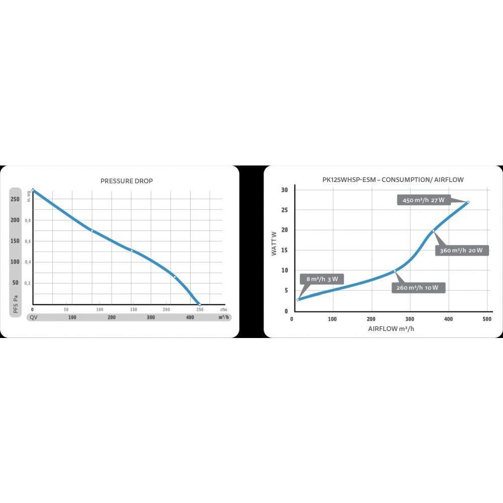 Economical fan Prima Klima Whisperblower with maximum air flow of 400 m3/h. Diameter 125 mm.