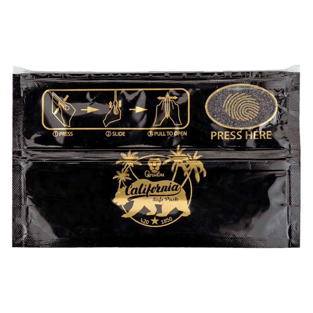 Press to open Qnubu California. Resistant to odor leakage. Easy opening press to open. Double zipper. Capacity 7g.